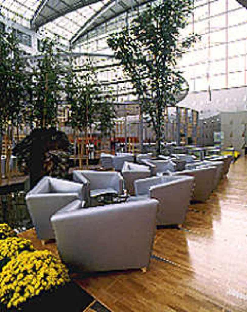 Möbelgarnitur. Foyer Hyatt-Hotel, Paris-Roissy. Die Garnitur ist bezogen mit dem Mikrofaser-Vliesstoff Lorica®.